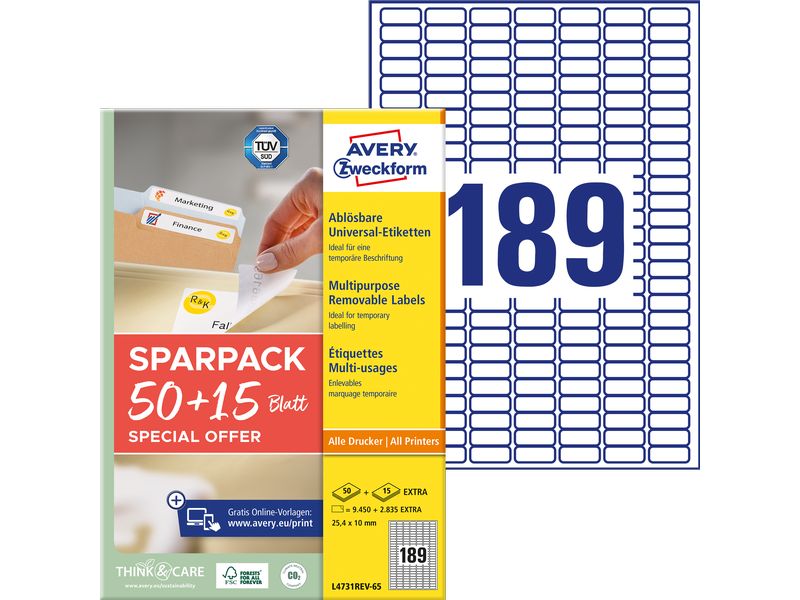 Avery Zweckform Étiquettes universelles L4731REV-65, 25.4 x 10 mm, 65 feuille
