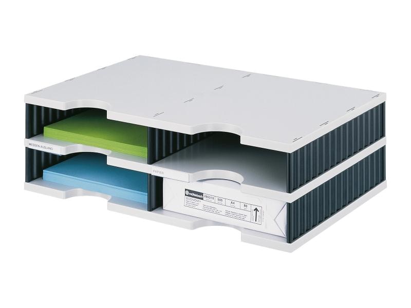 Styro Rangement pour documents styrodoc duo Standard, Noir, 4 compartiments