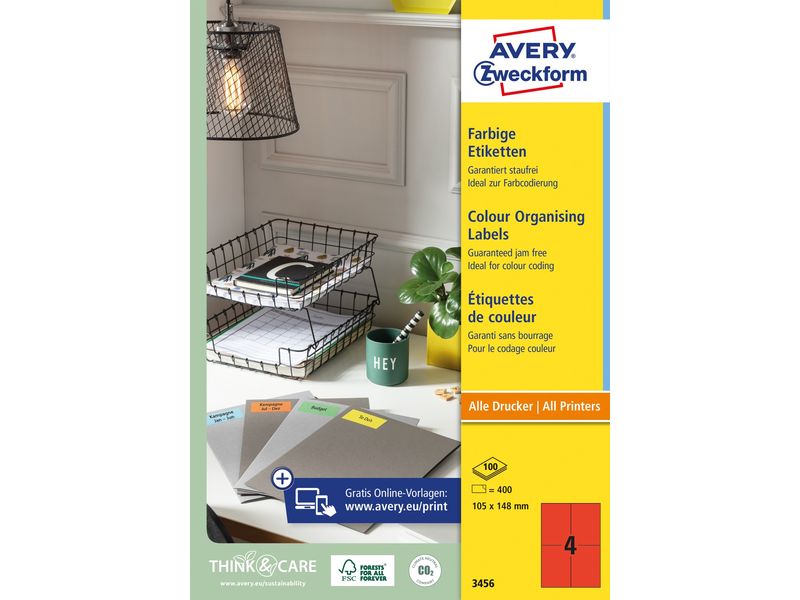 Avery Zweckform Étiquettes universelles Rouge, 100 feuille