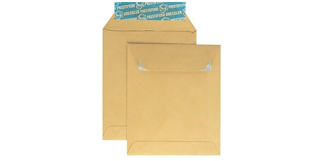 Enveloppe sans fenêtre avec fermeture adhésive en papier kraft brun.