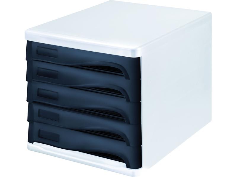 Helit Boîte à tiroirs Colours 5 tiroirs, Blanc/Noir