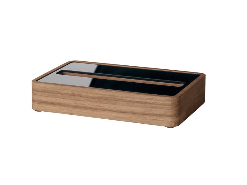 Porte-cartes de visite en bois de chêne massif en combinaison avec de l'acrylique noir de haute qualité