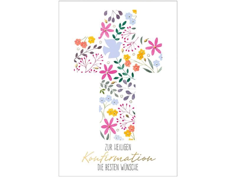 Susy Card Carte de félicitations Confirmation 11.5 x 17 cm, croix fleurie