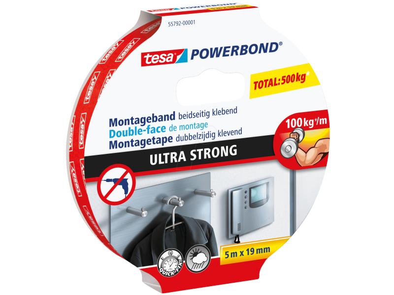 tesa Ruban de montage Powerbond Ultra Strong 19 mm x 5 m, Blanc