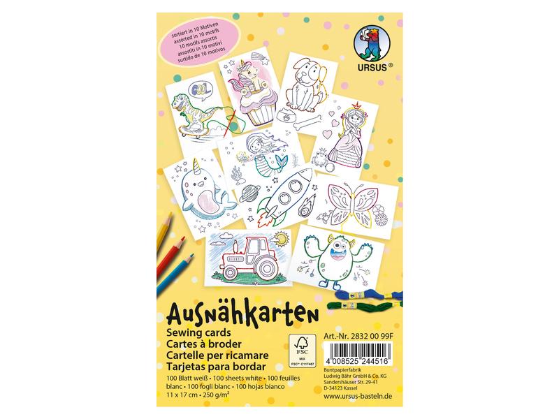 URSUS Cartes à broder 11 x 17 cm, 100 pièces, blanc