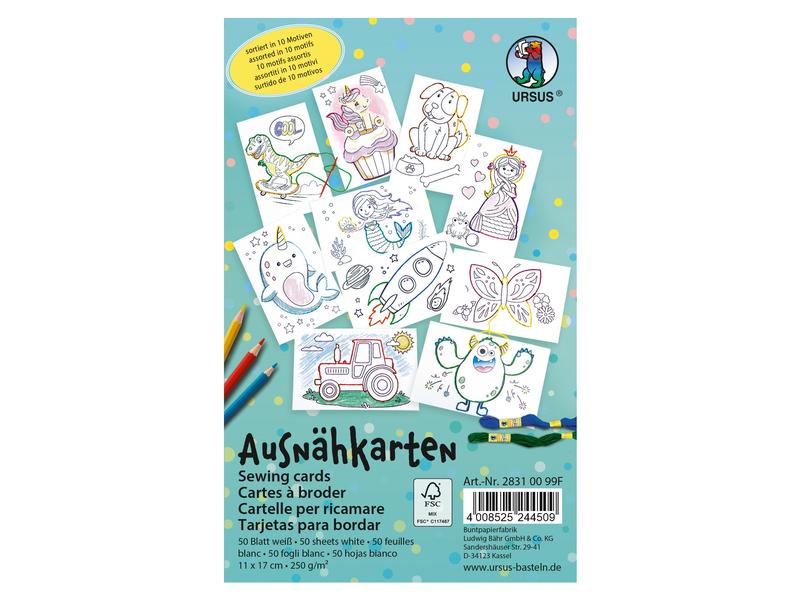 URSUS Cartes à broder 11 x 17 cm, 50 pièces, blanc