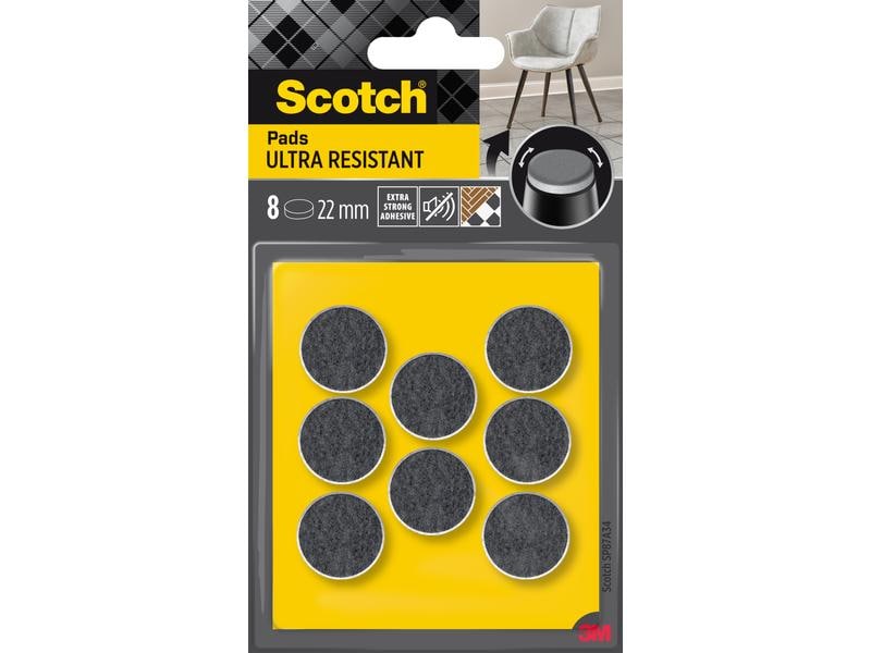 3M Patins en feutre Ultra Resistant, Ø 22 mm, Gris, paquet de 8