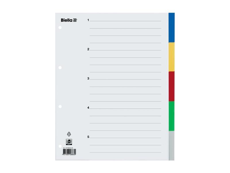 Biella Registre A4 5 pièces pour sacs de présentation, multicolores