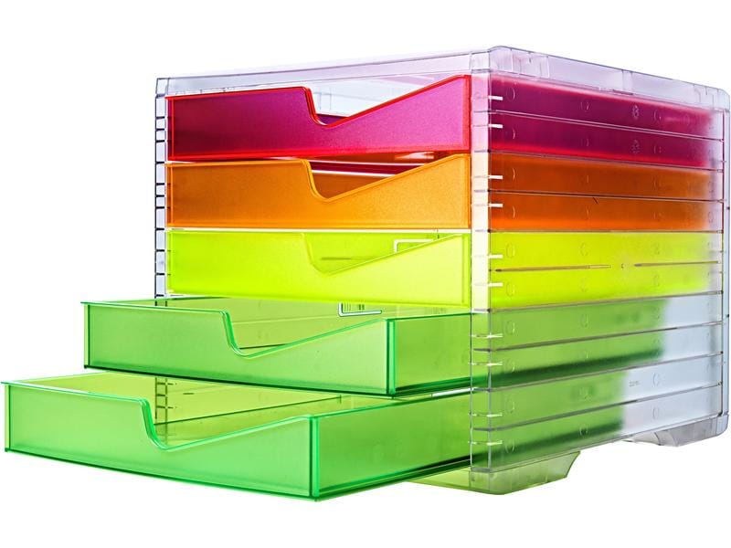 Boîte à tiroirs transparente avec 5 tiroirs dans des couleurs néon