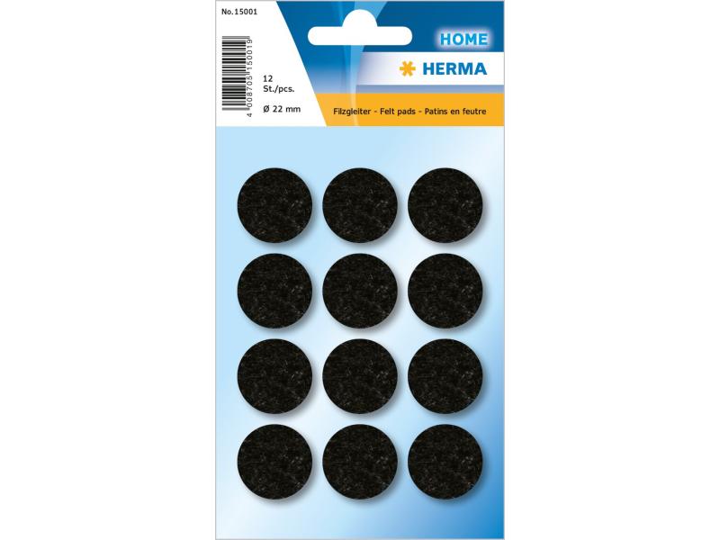 Herma Stickers Patins en feutre Ø 22 mm, noir, 12 pièces