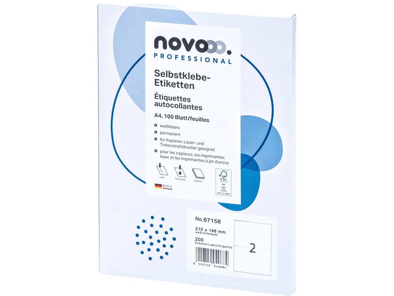 novooo. Étiquettes autocollantes 210 mm, 100 feuilles