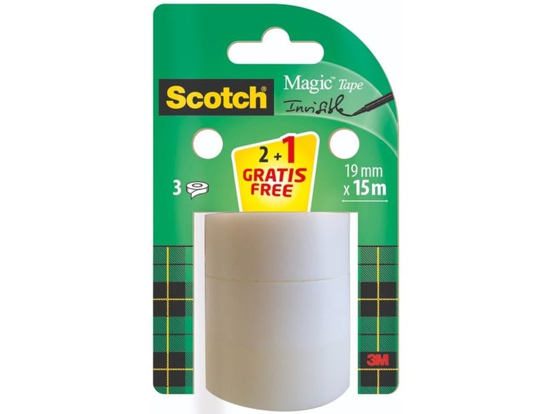 Scotch Ruban adhésif Magic 19 mm x 15 m, 2 rouleaux + 1 gratuit