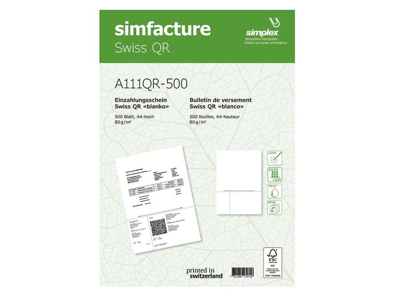 Simplex Bulletin de versement Simfacture Swiss QR 1000 feuilles, blanc