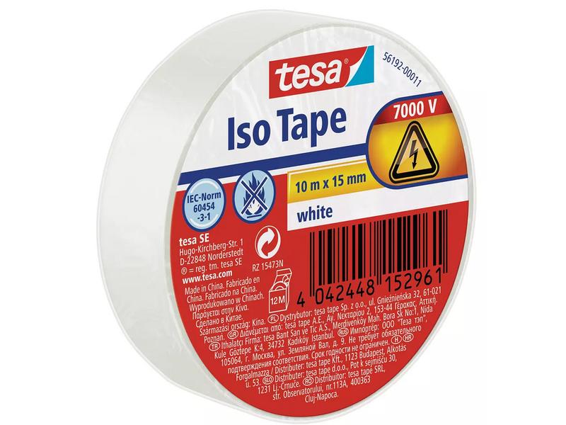 tesa Bande isolante -Set Iso Tape, 15 mm x 10 m, 5 rouleaux, Blanc
