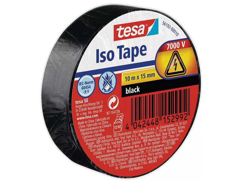 tesa Bande isolante -Set Iso Tape, 15 mm x 10 m, 5 rouleaux, Noir