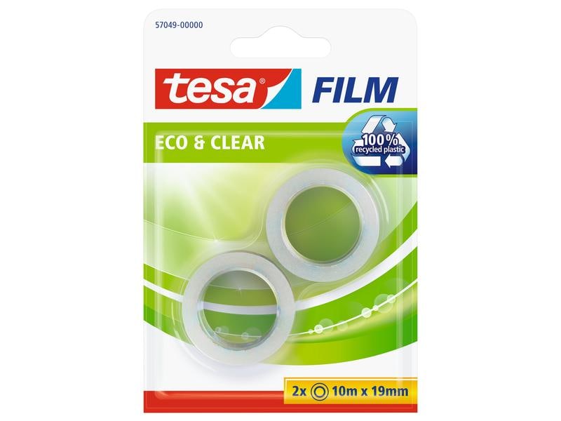 tesa Ruban adhésif Eco & Clear 19 mm x 10 m, Transparent, 2 Rouleaux