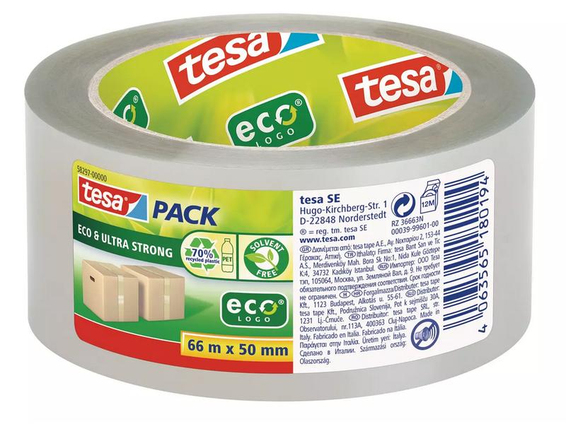 tesa Ruban adhésif pour paquets Eco & Ultra Strong, 50 mm x 66 m, Transparent